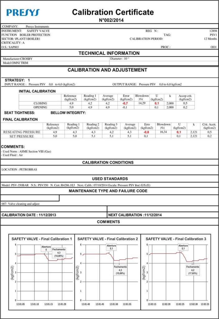 It will generate the full calibration report that will include the calibration graphics, calculation of blowdown, photos of the valve before and after maintenance as well as any technical relevant information.